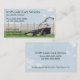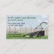 Un diseño de tarjeta de visita personalizado que muestra una cortadora de césped cortando hierba. Ideal para cualquier negocio que haga mantenimiento de césped.