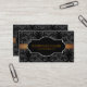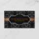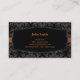 Tarjeta de presentación de lujo Gold Stripe Black Damask.