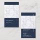 tarjeta de visita de mármol minimalista con fondo azul marino y rayas de mármol gris en medio de la tarjeta de visita vertical estándar con rayas verticales plateadas en el lado derecho. El elegante tipo de letra minimalista se utiliza para toda la información personalizada