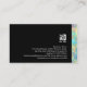 Esta llamativa tarjeta profesional de negrita negra de negocios presenta una elegante banda de mezcla de varios colores abstracta en el borde inferior. Su nombre y título aparecen justo encima de este borde con estampado, sobre un fondo negro azabache. El mismo tema con patrones aparece en la parte posterior de la tarjeta, excepto que la banda está en el borde derecho. El logotipo de su empresa y los detalles de contacto aparecen en la sección negra de la tarjeta. El diseño de esta tarjeta de visita da una impresión sorprendente y es perfecto para temas de alto impacto, activos, de moda, estilo, moda, profesionales, modernos, sofisticados y abstractos.