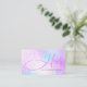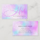 Tarjeta de presentación de salón de estilista de cabello femenino pastel con brillo holográfico