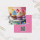 Una tarjeta de visita para los negocios de quequitos o panaderías. Este diseño incluye un código QR en la parte posterior.
