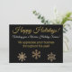 Un copo de nieve negro y dorado personalizado, Feliz feriado profesional saludos Navidades de negocios Tarjeta.Dé las gracias a sus clientes con esta moderna tarjeta profesional de apariencia de vacaciones neutra. Puedes ofrecer un descuento, venta, promoción especial o simplemente darte las gracias y unas vacaciones felices. En la parte posterior puede añadir la imagen de su logotipo.