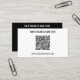 Colores y tipos de letra de personalizado - Tu código QR y Personalizado Texto Profesional Nombre de negocio personalizado Sitio web Tarjeta de presentación promocional - Añadir tu código QR - Imagen o logotipo / Nombre - Compañía / Sitio web o correo electrónico o teléfono - Información de contacto / Dirección - Redimensionar y mover o eliminar / añadir elementos - Imagen / texto con herramienta de personalización. Elige / Agrega tu fondo favorito y colores de texto / fuente / tamaño ! Por favor vea mis otros proyectos / diseños. También puede transferir estos diseños a más de 1000 productos Zazzle. Buena suerte - Estar contentos :)