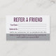 Tarjeta de presentación Dog Groomer. Tarjeta de visita de Personalizado con promoción de referencia para recompensar a sus clientes por remitir a sus amigos. Perfecto para un perrito, un salón de perros, un hotel para perros o un peluquero móvil. La tarjeta tiene un diseño moderno y color. Ideal para comercializar su salón o estilista y para aumentar su lista de clientes.Introduzca en su propia promoción, descargo de responsabilidad e información de la empresa.