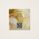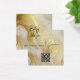 Una elegante tarjeta de presentación con un fondo de mármol de marfil y oro falso que incluye espacio para su nombre, profesión, identificador de redes sociales, sitio web, dirección postal y número de teléfono. Este diseño incluye un código QR en la parte posterior.