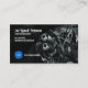 El cierre de una parte de la parte delantera de un motor de motocicleta y de una parte del guardabarros delantero y de la rueda representada en un tono gris lo convierte en un diseño muy llamativo para los que trabajan en la industria de la moto o del automóvil. El fondo negro azabache también le da un aura audaz y confiada a la primera impresión de su empresa.
