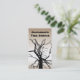 Esta tarjeta de visita está anunciando un servicio de árboles completo que ofrece paisajes, cuidados de césped, poda, remociones, fertilización, pulverización y consultas de enfermedades e insectos. Presenta un patrón artístico abstracto negro de la parte superior de un tulipán en invierno con ramas desnudas en silueta sobre un gradiente metalizado de bronce y marrón. Otro árbol está detrás junto con la información pertinente de negocios. Todo el texto se puede personalizar para que se adapte a su negocio particular.