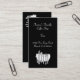 Esta plantilla de tarjeta de visita personalizado tiene un diseño sencillo de un lugar decorado con platería en blanco y negro sobre una servilleta de mesa blanca bonito adornada en gris sobre un elegante fondo negro. La fuente es un guión retro. Haga clic en Personalizar para cambiar las fuentes, los colores de fondo, agregar el logotipo de su empresa y mucho más, e incluso guardar su diseño para más adelante.