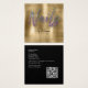 Esta tarjeta de visita de moda tiene un fondo dorado falso cepillado con la palabra "uñas" en diamantes falsos en la parte delantera y tiene espacio para su nombre e información de contacto en la parte posterior. Este diseño incluye un código QR en la parte posterior.