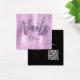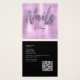 Esta tarjeta de visita de moda tiene un fondo azul falso con la palabra "uñas" en diamantes falsos en la parte delantera y tiene espacio para su nombre e información de contacto en la parte posterior. Este diseño incluye un código QR en la parte posterior.