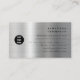 Un diseño moderno y sencillo con un toque metalizado de color gris plateado. Una tarjeta de negocios minimalista personalizada para hombres y mujeres que tienen una bengala para el estilo. Una forma sencilla y profesional de presentar tu negocio. Personalice sus detalles y el logotipo de su empresa para crear su propia tarjeta de visita única.