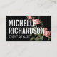 Un estilo atrevido de su nombre o nombre de negocio está cubierto con un ilustracion de estilo vintage de una vina rosa en esta plantilla de tarjeta de negocios negra. Un efecto llamativo y de diseño para una bonita impresión. © 1201AM CREATIVE