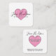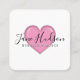 Tarjeta de presentación editable de diseño de corazón rosa minimalista simple elegante de 2,5"x2,5" pulgadas