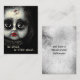 Una muñeca espeluznante y espeluznante acecha esta aterradora tarjeta de Halloween con sus grandes ojos penetrantes y sus sangrientos pinchazos en su frente. La aterradora imagen llama la atención tan pronto como se abre el sobre y transmite tu aterrador saludo. La cara angustiada dice "ten miedo, ten MUY miedo" delante de la tarjeta con texto adicional en el interior. Todo este texto puede ser editado o conservado como escrito. Nota: Estas son pequeñas tarjetas de 3 1/2 x 2 de 1/2 pulgadas que vienen en un paquete de 100 que las hace una opción económica para la escuela, eventos especiales, para clientes de negocios o entrega de tarjetas de grupo.