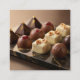Elegant calling card for chocolatiers and craft chocolate brands. Features script font, product photo, QR code, and business details. Customize with your brand name, tagline, website, social media, location, and trade show info. Perfect for events, fairs, and brand promotion.