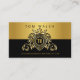 Tarjeta de presentación personalizada elegante monograma dorado negro 3.5 x 2.0