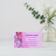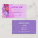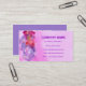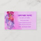 Una tarjeta de visita de bonito con un diseño floral semi-abstracto en tonos rosa, azul y malva sobre un fondo rosa, con letras violetas. El reverso es violeta con letras blancas. Listo para su personalizar con sus propios detalles.