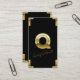 Sólido fondo negro limpio con una brillante letra dorada Q y una letra de guión para su nombre.Classy.