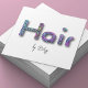 Esta tarjeta de visita de moda incluye la palabra "pelo" en el purpurina de neón en la parte delantera y tiene espacio para su nombre e información de contacto en la parte posterior. Este diseño incluye un código QR en la parte posterior.