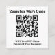 Buscar código WiFi de Hotel. El código QR de WiFi de su Hotel y los detalles de WiFi en una tarjeta de visita cuadrada. Reemplace el código QR mostrado por el suyo propio. Los clientes del hotel pueden escanear el código WiFi con su smartphone. Hay varios sitios web que permiten crear y descargar códigos QR gratis. Se pueden crear códigos QR para sitios web, correos electrónicos, Wifi, tarjetas virtuales y muchos otros usos. Un ejemplo es https://www.qr-code-generator.com