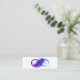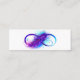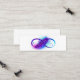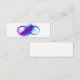 Símbolo infinito con una hermosa pluma pintada de color violeta y azul brillante sobre fondo blanco.