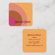 Tarjeta de visita de inspiración retro en tonos marrón, amarillo, rosa y naranja. El estilo del tipo de letra, el tamaño del tipo de letra y el color pueden cambiarse haciendo clic en "Editar usando la herramienta de diseño".