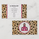 Una tarjeta de visita con fondo de leopardo y guarnecido rosa.  Texto negro sobre blanco puro.  Personalice su información.  En el lado opuesto se encuentra el fondo de impresión de leopardo.  El logo de La escuela rosa dentro de un círculo en forma de marco rosa.