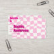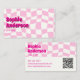 Destacar con esta moderna y elegante tarjeta de visita que presenta un audaz patrón de olas a cuadros rosa y blanco. El vibrante fondo combinado con una tipografía fuerte y lúdica lo hace perfecto para profesionales creativos, empresarios y todo aquel que quiera dejar una impresión duradera. El diseño de doble cara incluye espacio para su nombre, título, información de contacto y un código QR de personalizable para un acceso digital rápido. Una opción de moda y atractiva para el trabajo en red, la promoción de marca personal o la promoción de pequeñas empresas.
