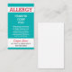 Tarjeta de visita roja de encargo de la emergencia del restaurante de la alarma de la alergia. Corrija esta tarjeta con la alergia Info. Tarjeta del viaje con el Info sobre sus alergias y cómo evitar la contaminación cruzada para preparar una comida. Todo el texto es editable. Añada su nombre y entre en contacto con el Info. Apoye de tarjeta es blanco llano a dar escriben cualquier nota adicional de usted o del personal de la cocina. Entre en contacto con para las peticiones de encargo. Más engranaje de la alergia en www.LilAllergyAdvocates.com