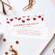 Tarjetas de nombre minimalistas con un simple fondo blanco, elegantes morteros rojos cayendo y detalles de los graduados. Puedes insertar las tarjetas de nombre en los anuncios de graduación o repartirlas a tus amigos para que se mantengan en contacto en el próximo año.