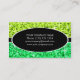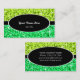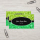 Plantilla de tarjeta de visita con un diseño moderno con estrellas diseminadas sobre un estilizado fondo "secuin look" en tonos lima y verde con un óvalo negro y rayas bordeadas de texto blanco y blanco. El texto puede cambiarse fácilmente utilizando la plantilla proporcionada o haciendo clic en el botón "Personalizar" para realizar más modificaciones. Tenga en cuenta que se trata de una imagen de arte digital impresa, que no brilla ni contiene purpurinas o secuencias reales.