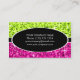 Plantilla de tarjeta de visita con un diseño moderno con estrellas diseminadas sobre un estilizado fondo "secuin look" en tonos lima y rosa con un óvalo negro y rayas bordeadas de texto blanco y blanco. El texto puede cambiarse fácilmente utilizando la plantilla proporcionada o haciendo clic en el botón "Personalizar" para realizar más modificaciones. Tenga en cuenta que esta es una imagen de arte digital impresa, no brilla ni contiene purpurinas o secuencias reales.