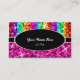 Tarjeta de visita con un diseño moderno con estrellas diseminadas por estilizadas franjas de color arcoiris "secuin look" sobre un fondo rosa, con texto escrito en blanco sobre una forma ovalada negra. Un diseño de personalizable para que puedas personalizar con tu propio texto, imágenes e ideas. Tenga en cuenta que se trata de una imagen de arte digital impresa y no contiene purpurinas o secuencias reales
