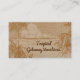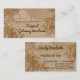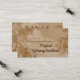 Tarjeta de visita personalizado de tamaño estándar con escritura retro y letras en bloque en castaño, la parte delantera tiene espacio para el nombre de tu empresa sobre un grabado marrón tropical vintage de palmeras en una playa de arena y hermosas nubes sobre olas tranquilas en el océano, y la parte trasera tiene espacio para tu nombre, título, dirección u otra información.