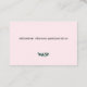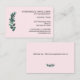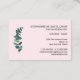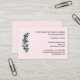 NOTA: El texto de esta tarjeta de visita de tamaño europeo se ha redimensionado para que se ajuste más a la realidad. Esta sencilla pero elegante tarjeta de visita está diseñada con un solo tallo de eucalipto en tonos verde azulados con tu nombre, profesión, información de contacto, dirección y otra información en una clásica letra de serif negra sobre un fondo rosa rubor. Utilice los campos de plantilla para introducir su propia información y eliminar lo que no sea necesario, como un número de fax, o agregar otra información según sea necesario. El reverso tiene espacio para texto adicional y muestra un tallo de eucalipto más pequeño. Para una mayor personalización, ¡envíame un mensaje!