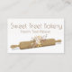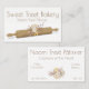 Tarjeta de visita con el tema del alfiler y la panadería. Decorado con flores y el nombre de la tienda a través de la tarjeta con información detallada en la parte posterior. Esto se puede personalizar para un ajuste personalizado