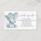 Tarjetas de gabinete para la solicitud de un libro de elefantes, perfectas para acompañar la invitación a la ducha de bebé.