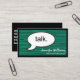 Estas simples tarjetas profesionales Verde azuladas "Talk" modernas de negocios son una elección de tarjeta de visita única y genial para un psicólogo, psiquiatra, consejero o cualquier otro negocio centrado en hablar o en la terapia. Esta carta es realmente atractiva; hay que notar y recordar.