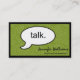 Estas tarjetas de visita profesional modernas y simples "Talk" Green son una opción única y fresca para un psicólogo, psiquiatra, consejero o cualquier otro negocio centrado en hablar o en la terapia. Esta carta es realmente atractiva; hay que notar y recordar.