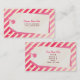 Tienda de ropa / tarjeta de visita al por menor con un fondo de diseño de rayas negras en diagonal rosa y ilustracion de etiquetas de compra en la parte delantera y trasera. Personalice el texto con su información.
