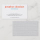 Utilizando un tratamiento de tipo único para su nombre o nombre comercial, esta tarjeta mantiene un tratamiento de texto mínimo en la parte delantera, mientras que la parte posterior de la tarjeta presenta un patrón moderno de círculos grises/guijarros. © 1201AM DESIGNS