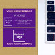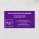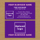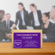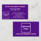 Tarjeta de visita que puede personalizar para que sus clientes o clientes encuentren fácilmente su dirección de negocio e información de contacto. Los colores de diseño y el estilo son textos en rosa y blanco sobre fondo morado y textos centralizados alineados de su nombre comercial, su nombre y título. Para personalizar de esta tarjeta de visita, sube el logotipo de tu empresa, escribe tu nombre de negocio, tu nombre, tu título, dirección, número de teléfono, correo electrónico y sitio web o tu página de red social de empresa. Después de subir el logotipo y escribir textos, por favor compruebe la apariencia en el frente y en el trasero. Si la apariencia le resulta agradable, puede realizar su pedido ahora. Si necesita cambiar el tamaño y mover el logotipo y los textos para que encajen en esta tarjeta de visita, cambie la herramienta de diseño. También puede realizar otros cambios en la herramienta de diseño según el aspecto de esta tarjeta de presentación que prefiera, como cambiar el color de fondo, el color de fuente y el estilo de fuente.