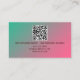 Tarjeta de presentación de tarjetas de presentación con logotipo profesional QR Code Colorful Name. Utilice la herramienta de filtro en la parte delantera y trasera de esta tarjeta de visita para el efecto especial. Personalice esto con su nombre, profesión, el enlace para el código QR y la información de la empresa en la tarjeta. Editarlo al Personalizar. Todas mis tiendas en Zazzle están aquí https://bit.ly/SandyspiderStores