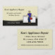 Hombre de reparación de dispositivos con una caja de herramientas parado frente a una lavadora y secadora. Esta tarjeta de visita tiene muchos usos para hombres, plomeros, electricistas o reparadores de electrodomésticos. Viene en varios colores diferentes y todos los colores, incluido el fondo y el uniforme y el gorra de los hombres, se pueden personalizar para su esquema de color sin cargo adicional. Contáctame en mshake5918@yahoo.com para obtener un servicio rápido.