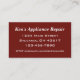 Agente de reparación de dispositivos con una caja de herramientas. Esta tarjeta de visita tiene muchos usos para hombres, plomeros, electricistas o reparadores de electrodomésticos. Viene en varios colores diferentes y todos los colores, incluido el fondo y el uniforme y el gorra de los hombres, se pueden personalizar para su esquema de color sin cargo adicional. Contáctame en mshake5918@yahoo.com para obtener un servicio rápido.