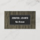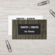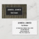El diseño de esta tarjeta de visita presenta un estilo rústico con aspecto de madera de imitación marrón. En la parte delantera también hay una zona rectangular de color oscuro que contiene un nombre y una profesión/rol/título/posición que se pueden personalizar. La parte posterior presenta un diseño simple que incluye un nombre, una profesión/rol/título/posición, e información de contacto que se puede personalizar. Este diseño de tarjeta puede ser utilizado por un profesional, o quizás por un propietario de una pequeña empresa. [~Z0000061]
