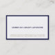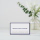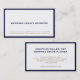Dejar una impresión duradera con nuestra tarjeta de visita simple en la frontera azul de la Marina Blanca. La parte delantera de esta tarjeta presenta un sencillo fondo blanco y limpio con el nombre de su empresa y la información de contacto esencial que se muestra elegantemente en la tipografía clásica azul marino y dorado, enmarcada en azul marino. En la parte trasera, hay espacio para detalles individuales como tu nombre, título o rol, e información de contacto personal. Esta tarjeta de visita es sofisticada y profesional, lo que la convierte en una potente herramienta para el trabajo en red y para representar a su marca.