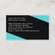 Estas elegantes tarjetas profesionales Minimalistas y profesionales de gama baja, de color negro y azul Aqua Blue, son una opción elegante y elegante para el profesional de negocios. Un diseño único para los empresarios contemporáneos; sería ideal para abogados, profesionales financieros y de marketing, estilistas y diseñadores.