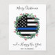 Envíe saludos navideños de Feliz a amigos y familia con esta tarjeta única de Navidades de la policía de la Línea Azul - corona de Navidad en un diseño de la bandera estadounidense con colores de la bandera de la policía, moderno diseño azul y blanco negro con bayas y aliños. Personaliza con el apellido. Esta tarjeta de Navidades de policía es perfecta para familias de policías o tarjetas de navidades del departamento de policía. DERECHOS RESERVADOS © 2020 Judy Burrows, Black Dog Art - Todos los derechos reservados. Postal de Navidades delgados de la línea azul de la policía presupuestaria